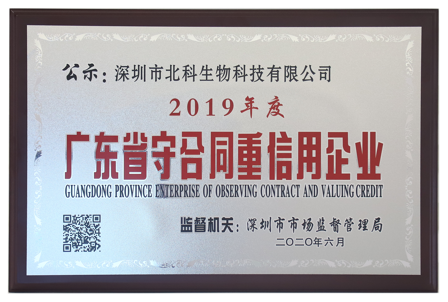近日,廣東省市場監(jiān)督管理局公布了2019年廣東省守合同重信用企業(yè)名單。北科生物憑借嚴(yán)謹(jǐn)創(chuàng)新的企業(yè)理念、誠實守信的經(jīng)營原則和良好的社會信譽等方面的優(yōu)異成績,被授予“2019年廣東省守合同重信用企業(yè)”的榮譽稱號。